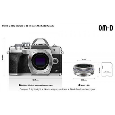 Olympus OM-D E-M10 Mark IV 마이크로 포서드 시스템 카메라 키트, 20MP 센서, 5축 이미지 안정화, 강력한 AF 및 LC-37C 자동 렌즈 캡 실버