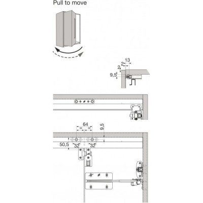 HETTICH 9238125 Wing-Line Pull to Move leicht Öffnungsunterstützung schwer Links (Schiebetürbeschlag), für einen Schrank mit Faltschiebetüren Kunststoff grau, Silber