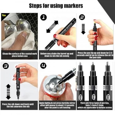 Liquid Chrome Silver Marker Metallic Pens, 3PCS DIY Silver Liquid Chrome Oil-based Paint Marker Pen for Any Surfac