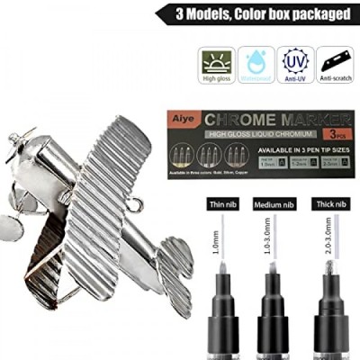 액체 크롬 실버 마커 금속 펜, 모든 Surfac 용 3PCS DIY 실버 액체 크롬 유성 페인트 마커 펜