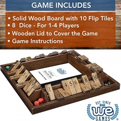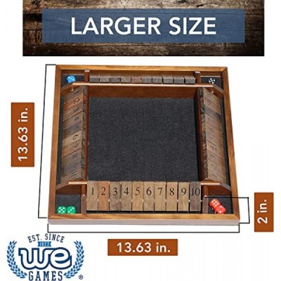 WE Games 4 Player Shut The Box Dice Board Game with Lid - Natural Wood - Large Coffee Table Size - 14 Inches, for Family and Adult Game Night Play in Classroom, Home or Bar