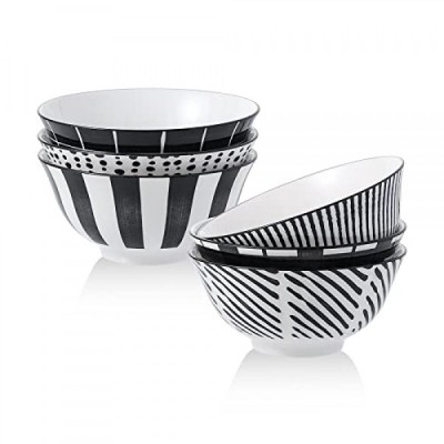 Cereal Bowl Porcelain Soup Bowls - Ceramic Bowl Set 23 oz - 6 Inch Japanese Bowls Black and White for Serving Salad | Ramen | Noodle | Pho | Oat | Oatmeal - Microwave and Dishwasher Safe - Set of 6
