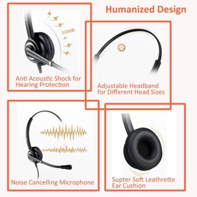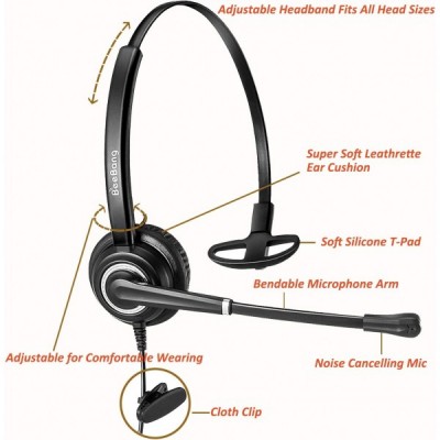 Beebang Monaural Telefon Headset RJ9 Kopfhörer Call Center Headset mit Noise Cancelling Mikrofon Rauschunterdrückung Für Telefon Cisco Yealink Fanvil Grandstream Htek Huawei Dlink Akuvox Escene Mono Headset RJ9 Cord 0