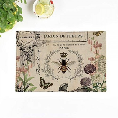 Set of 4 Placemats Queen Modern Vintage French Bee Wateringcan Antique Honey Crown 18x12.5 Inch Parties Decor Non-Slip Washable Place Mats for Kitchen Dinner Table Mats