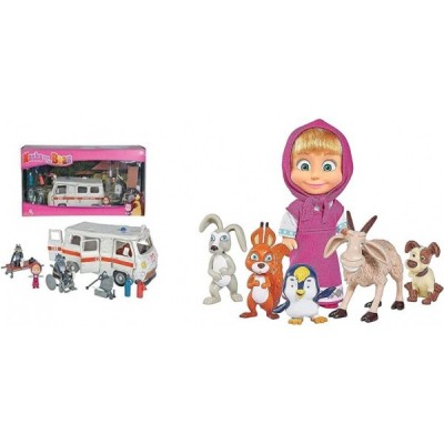 Simba 109309863 Masha Play Set Ambulance & Masha and The Bear Masha and Her Animal Friends - 6 Piece Set + Masha and Her Animal Friends