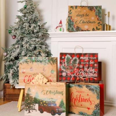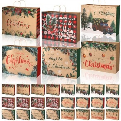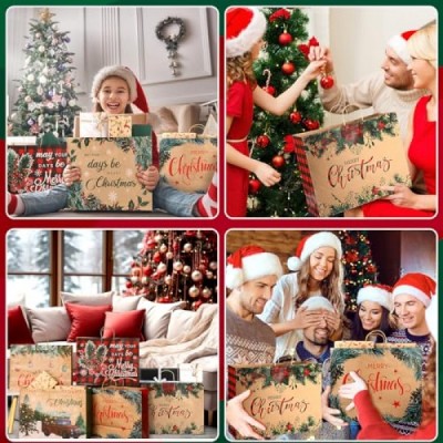 36 Pcs Extra Large Christmas Gift Paper Bags, 20 x 7 x 15'' Christmas Tote Bags with Handles Jumbo Christmas Gift Bags Bulk Kraft Paper Gift Bags for Wrapping Holiday Presents Xmas Party
