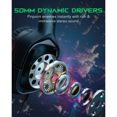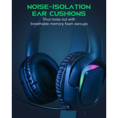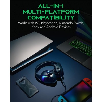 Black Shark Gaming Headset für PC PS4 PS5 Xbox Nintendo Switch, Kopfhörer mit Kabel und RGB Licht, Ultraklarem Mikrofon, Noise Cancelling Headphones for Gamer Schwarz