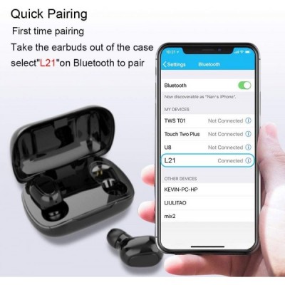 HOSPAOP Bluetooth Kopfhörer in Ear Sport Kabellose Headset, L21 Bluetooth 5.0 Stereo Lärmminderung Wireless Bluetooth Ohrhörer mit Ladebox und Integriertem Mikrofon für iPhone, Samsung, Huawei