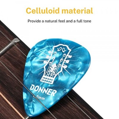 Donner 셀룰로이드 기타 추천 48 팩 케이스 포함 얇은, 중간, 무거운 및 매우 무거운 게이지 포함