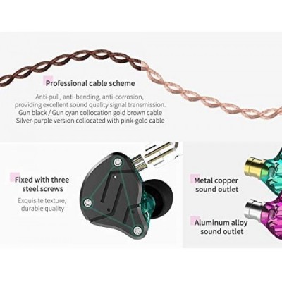 Yinyoo KZ ZSN Dual Driver KopfhOerer KZ Kopfhorer 1BA + 1DD In Ear OhrhOerer HiFi Sport Headset mit abnehmbarem 2Pin Kabel mit Mikrofon ZSN Cyan