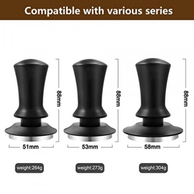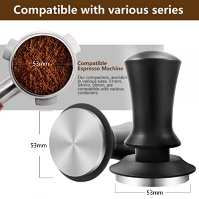 에스프레소 핸드 탬퍼, 보정된 스프링이 있는 프리미엄 바리스타 커피 탬퍼, Breville 시리즈 54mm 포터필터 바스켓용 100% 플랫 스테인레스 스틸 베이스 탬퍼(53mm, 블랙)