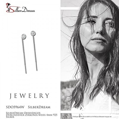 SilberDream SDO5964W Women's Earrings 4 mm 925 Silver Zirconia White, Sterling Silver Cubic Zirconia, Cubic Zirconia