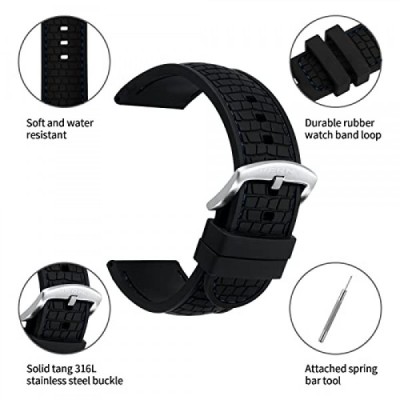 BERNY Silicone Watch Bands Soft Rubber Waterproof Replacement Watch Straps with Stainless Steel Buckle Assroted Colors - 22mm, 24mm for Men and Women (Grey, Blue, Green, Gold)