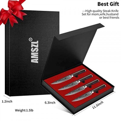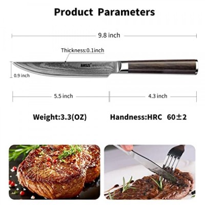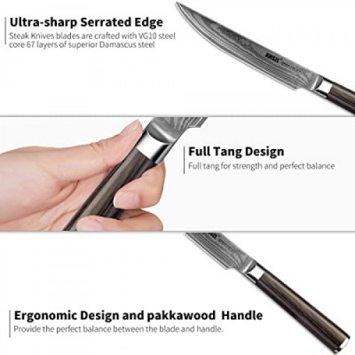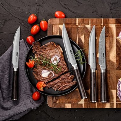 Steak Knives - Set of 6 - Damascus - 5.5" - Japanese VG10 Core Steel Forged Straight Edge - Pakka Handle - Gift Box