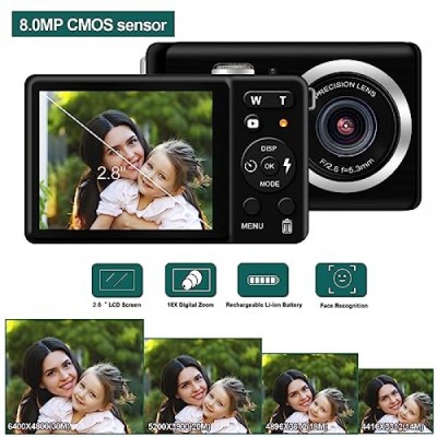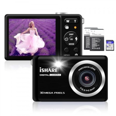 Digital Camera for Photography, Rechargeable 30MP Point and Shoot Camera with 2.8 LCD 18X Digital Zoom for Kids Teens Elders(32GB Card & 2Battery)