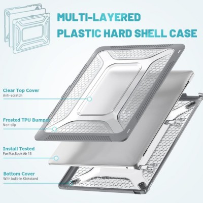 MacBook Air 13 인치 2018-2021 A2337(M1)/A2179/A1932 하드 쉘 보호용 스냅 케이스와 호환되는 TYTX 케이스, 킥스탠드 포함, 회색