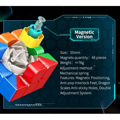 Moyu Huameng 3x3 Magnetic Speed Cube YS3M Stickerless Magnetic Cube 55mm with Magnetic Positioning & Double Adjustment System