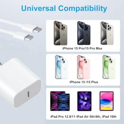 iPhone 15 Charger 20W USB C Charger for iPhone 15/15 Plus/Pro Max, iPad Pro 12.9/11 inch, iPad Air 5th/4th, iPad 10th, 2Pack PD Fast Charger Block with 6.6FT Long USB C to C Cable