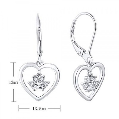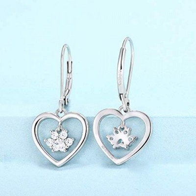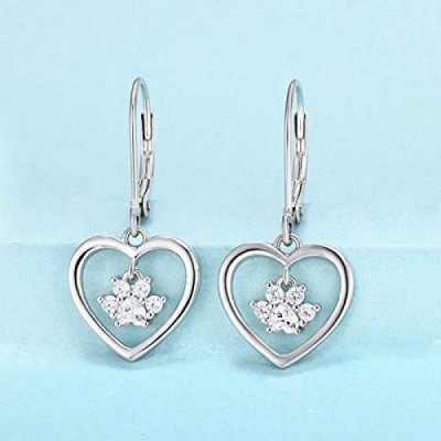 JO WISDOM Women's Earrings Heart Silver 925, Earrings Hanging Dog Paw Print Footprint I Love You from My Heart with 5A Cubic Zirconia Jewellery for Women Girls Mother Jewellery for Women