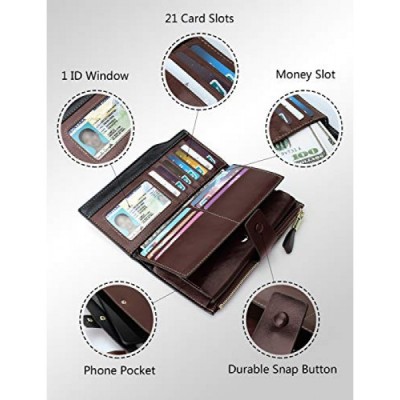 Demon&Hunter DZA2083 여성용 가죽 지갑 RFID 보호 대용량 롱 지갑 21 카드 슬롯 가죽 클러치 백
