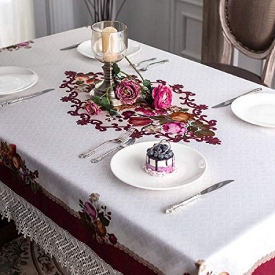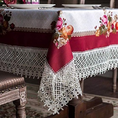 ARTABLE 레이스 테이블 천 봄 직사각형 가을 골동품 꽃 장식 야외 농가를위한 마크라메 식탁보 소박한 주방 파티 생일 피크닉 (버건디, 60 x 104 인치)