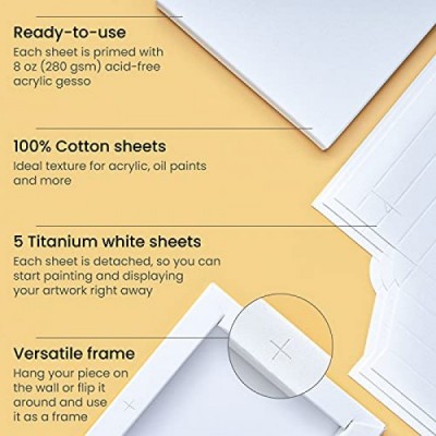 Arteza 그림용 접이식 캔버스 보드, 8.5x11인치, 5팩, 100% 면, 8온스 프라이밍된 흰색 캔버스, DIY 프레임, 아크릴 및 유화 및 드로잉용 미술 용품