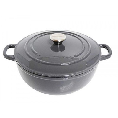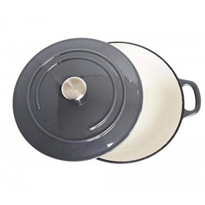 Mirro MIR-19059 4.8쿼트 주철 흰색 에나멜 코팅 내부 더치 오븐, 회색, 즉시 사용 가능
