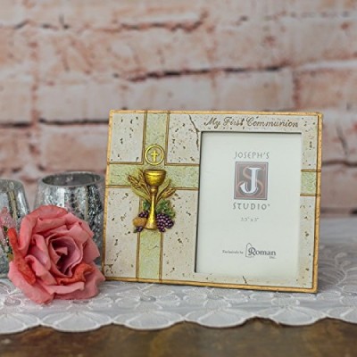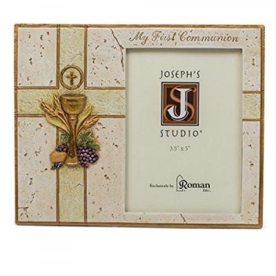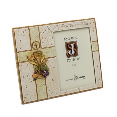 Roman Joseph's Studio Inc., 3.5" x 5" 사진용 첫 영성체 프레임, 첫 영성체 컬렉션, 수직 탁상 또는 책상 디스플레이 - 7.5" H, 수지 및 석재, 장식