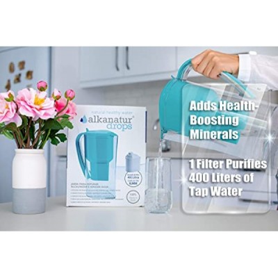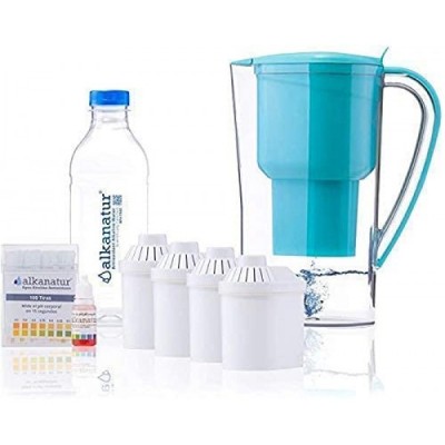 Alkanatur Alkaline Water Pitcher Filter Annual Pack Bundle with 4 Filters (Filters Fluorides, Chlorine, Heavy Metals, etc)- Alkalized and Ionized tap Water - High pH Alkalizer Machine