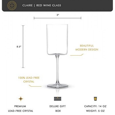JoyJolt Claire 14온스 레드 와인 잔 세트. 크리스탈 안경 2개로 구성된 대형 안경 세트입니다. 우아한 넓은 림 스템웨어 - 줄기가 있는 현대식. 독특한 선물을 위한 유래