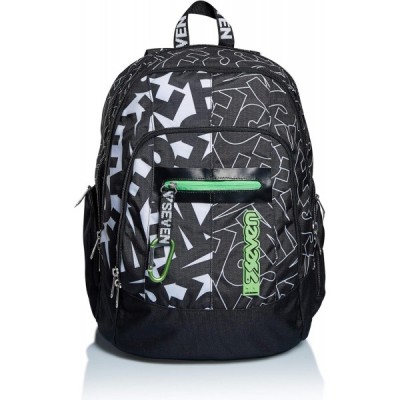 Seven Rucksack, Backpack für Schule, Uni & Freizeit, Geräumige Schultasche für Teenager, Mädchen, Jungen, Gepolsterter Schulranzen; mit Laptopfach -Advanced ALPHA BEAT, schwarz Schwarz Alpha