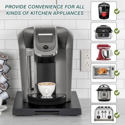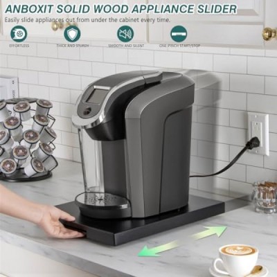 ANBOXIT 기기 슬라이더, 커피메이커용 목재 슬라이딩 트레이, 카운터용 커피포트 슬라이더, 주방 캐디 롤링 트레이(클래식 블랙-딥)