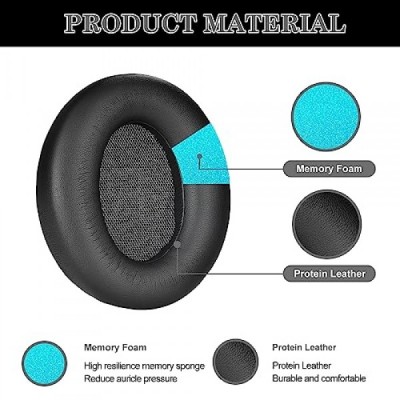 Protein Leather Ear Pads Replacement for Anker Space Q45 Headphones,Space Q45 Earpads with Isolation Foam, Headset Ear Cushion Repair Parts(Black)