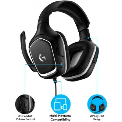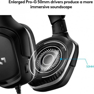 로지텍 G332 스페셜 에디션 유선 게이밍 헤드셋, 50mm 드라이버, 가죽 이어컵, 3.5mm 잭, 플립 음소거 스위치가 있는 6mm 마이크, PC/Mac/Xbox One/PS4/Nintendo 스위치, 블랙 스테레