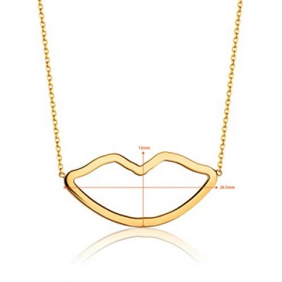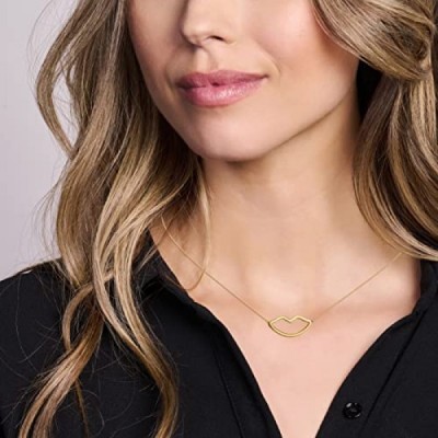 OROVI Jewellery Women's Necklace Yellow Gold with Lip Kiss Mouth Pendant Chain 9 Carat (375) Gold 45 cm Long, Gold
