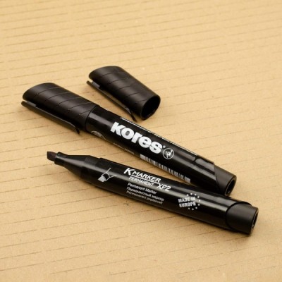 Kores - K-Marker XP2: Schwarze Permanent Marker Stifte, Keilspitze mit wasserfester und geruchsfreier Tinte, für alle Oberflächen, 12 Stk Packung