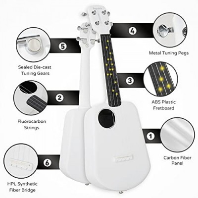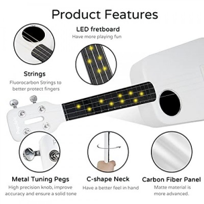 PopuMusic Populele 2 Compact and Portable Smart Ukulele Carbon Fiber Edition for Beginners, Experts, Kids and Adults