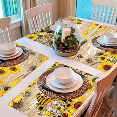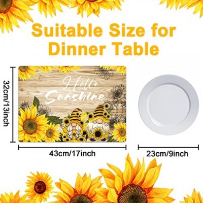 Sunflower Placemats Set of 6 Sunshine Plastic Table Mats Vintage Sunflower Theme Place Mats Summer Holiday Washable Table Placemats for Indoor Outdoor Party Kitchen Dining Table