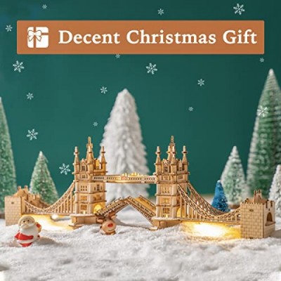 ROBOTIME 3D Puzzle Wooden Craft Kits with LED Light DIY Tower Bridge Construction Model Kit to Build for Teens Brain Teaser Puzzle Home Decor Birthday Gifts
