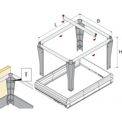 HETTICH 9039927 Systema Top 2000 행잉 프레임(서랍 프레임), 504 x 350 x 244mm, 스틸/플라스틱 알루미늄 효과, 실버