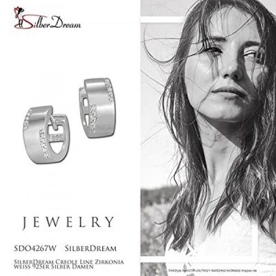 SilberDream SDO4267W SDO4267W Women's Creole Earrings 925 Silver Hoop Earrings Line Zirconia White, Sterling Silver, Cubic Zirconia