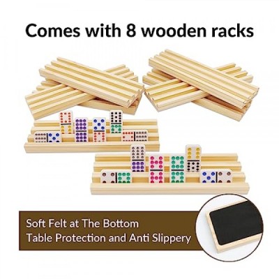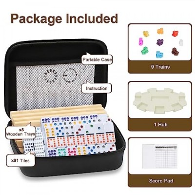 8개의 나무 쟁반/랙이 포함된 멕시코 기차 도미노 세트, 8개의 도미노 타일 홀더가 포함된 더블 12개 도미노 여행 세트, 가족 어린이를 위한 휴대용 케이스가 포함된 91