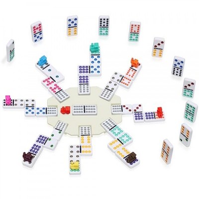 Mexican Train Dominoes Set with 8 Wooden Trays/Racks, Double 12 Dominos Travel Set with 8 Domino Tiles Holders, 91 Tiles Double 12 Colored Dominoes Game Set with Portable Case for Families Kids