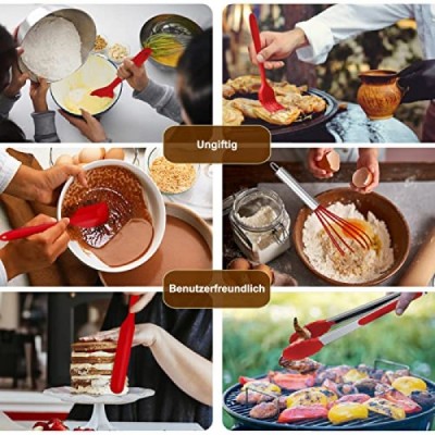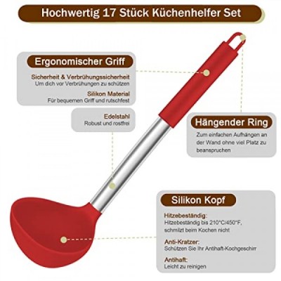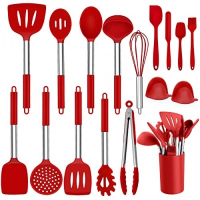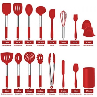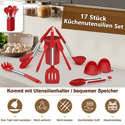 Homikit Silicone Kitchen Utensils, 17-Piece Cooking Utensils Set with Stainless Steel Handle, Non-Stick Heat Resistant Kitchen Appliances Set, Healthy and Durable, Dishwasher Safe, Red