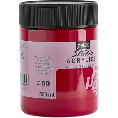 Pébéo - Acrylic Fine Studio Acrylics - 예술가용 아크릴 페인트 - 전문가 및 초보자용 색상 - 빛나는 착색 색상 - 마젠타 원색 - 500ml 마젠타 프라이머
