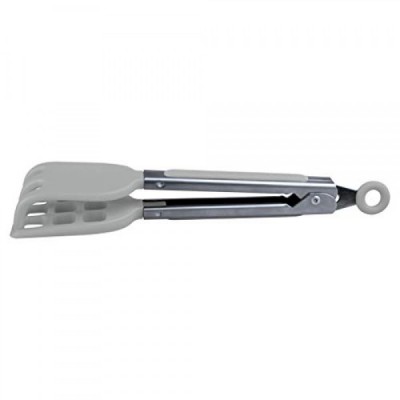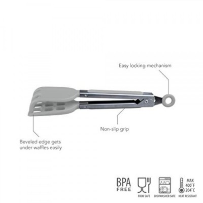 Tovolo Easy-Grip 미니 미끄럼 방지 스테인레스 스틸 손잡이, 내열성 실리콘 헤드, 와플 및 아침 식사용 주방 집게, 굴 회색