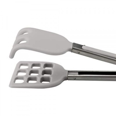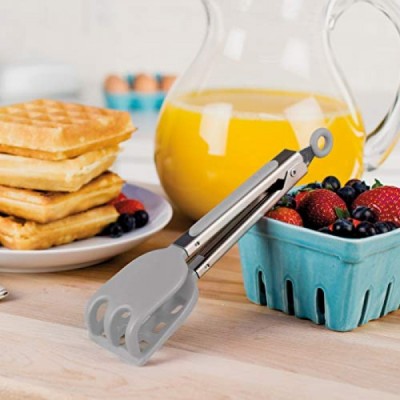 Tovolo Easy-Grip Mini Non-Slip Stainless Steel Handle, Heat-Resistant Silicone Heads, Kitchen Tongs for Cooking Waffles & Breakfast, Oyster Gray