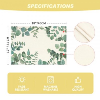 Artoid 모드 유칼립투스 잎 식탁용 여름 플레이스 매트, 12 x 18 인치 봄 계절 휴일 소박한 빈티지 세탁 가능 테이블 매트 녹색 4개 세트