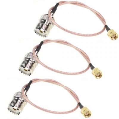 SMA Male to UHF PL259 Female Connector Handled Atenna Cable 12 inch Pack of 3 for Amplifier, for Baofeng Wouxun Kenwood Icom Yaesu CB Radio Handheld Walkie Talkie