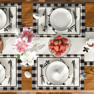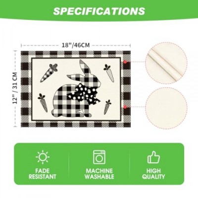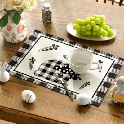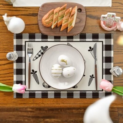 Artoid 모드 버팔로 격자 무늬 토끼 당근 식탁용 부활절 플레이스 매트, 12x18 인치 봄 계절 휴일 장식 소박한 빈티지 세탁 가능 테이블 매트 4개 세트